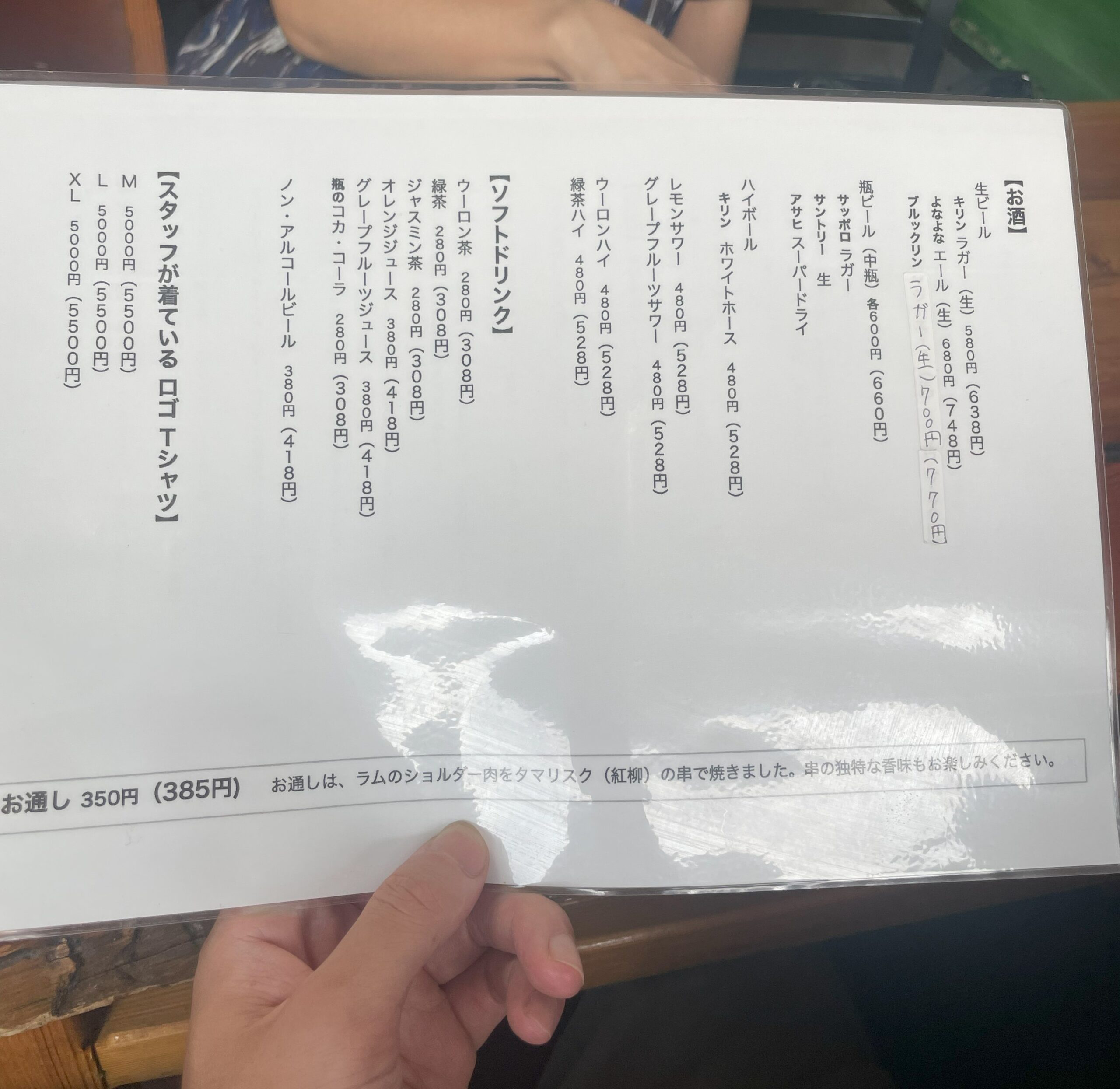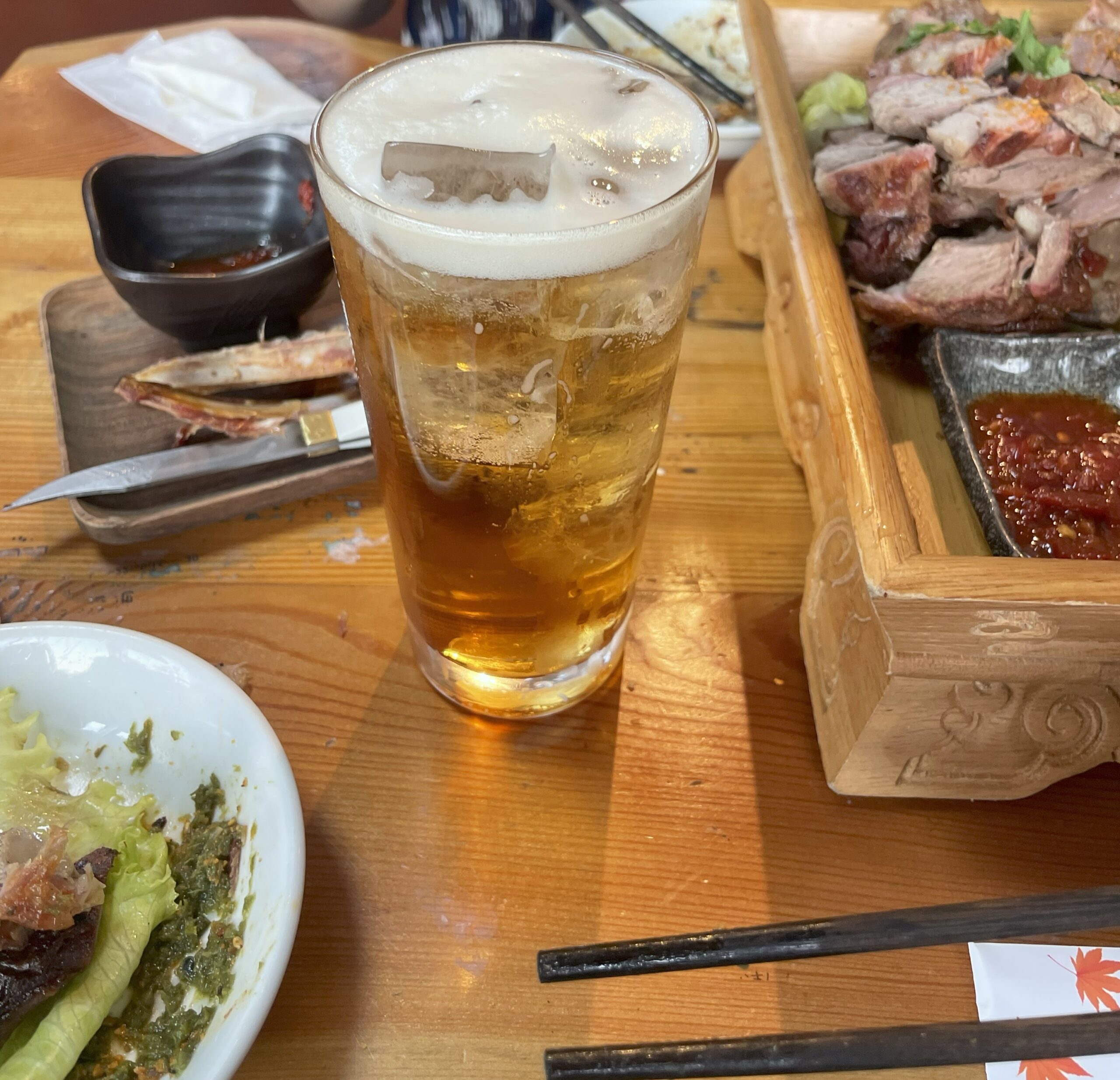 メニューはすべて写真で取ることはできませんでしたが、お酒のメニューが豊富でよなよなエールや馬乳酒等がありました。馬乳酒は度数が40度以上で軽い気持ちで飲んで吹き出しそうになりました。